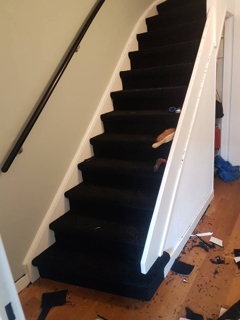 Tapijt verwijderen en schoonmaken van u trap en afvoeren € 175 euro